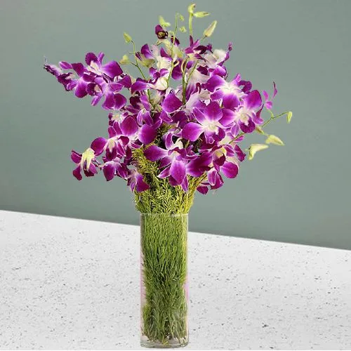 Send to your friends and loved ones this gift of Captivating Vase Full of 12 Purple Orchids and make them smile. This vase arrangement has the following features: