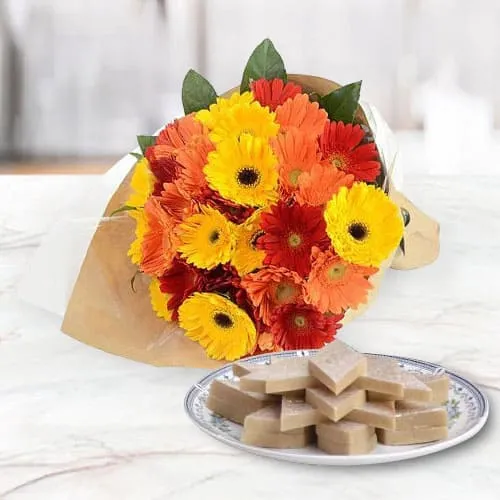 Present this delicious 500 gms Kaju Katli and perfect Arrangement of 15 Mixed Gerberas for Birth-Day of your loved ones and paint a happy picture in their hearts.