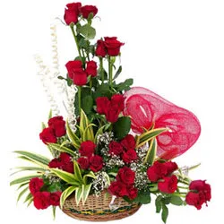 Create magical moments by ordering online this Striking Arrangement of Dutch Red Roses for your loved ones and spread your warm feelings into their hearts. This beautiful Floral Arrangement arrives with 36 Dutch Red Roses.