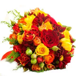 Order online this Stylish Pictures Perfect Bouquet of Mixed Flowers and surprise your near and dear ones. This glorious Bouquet of the season includes 7 Roses, 5 Gerberas and Fillers.