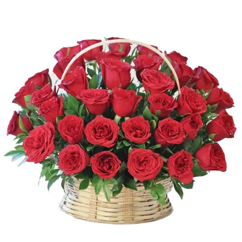 15 Exclusive Red Dutch Roses in Cane Basket