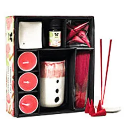 Gift your dear ones with Marvelous IRIS Fragrance Gift Hamper so that they feel very special. This Gift Hamper is adorned with 20 Incense Sticks, 10 Cones, 10ml Vapourizer Oil, 3 Tealight Candles, 1 Vapourizer Jar and an Incense Stick Holder. This Vapourizer Oil is available in Apple Cinnamon / Lavender / Melon Musk / Orange Blossom fragrances.