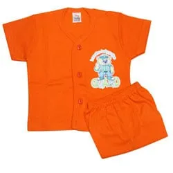 Deliver this comfortable Cotton Baby wear set of T shirt and shorts in bright orange color for Baby Boy of 0 month - 6 months