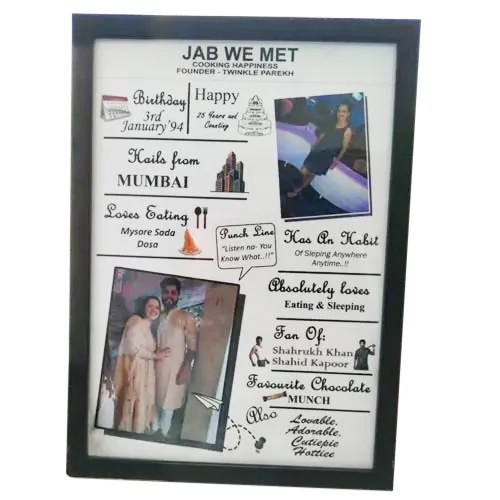 Have fun with your friends and family with this Exclusive All About Me Frame and enhance your celebrations. This is a Black colour Frame in A4 size.