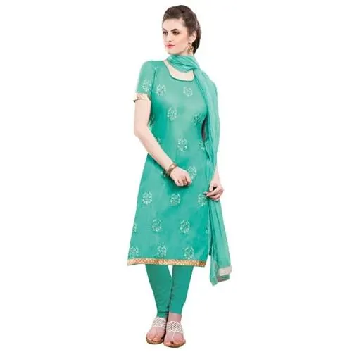 Order online this Graceful Chiffon Cotton Embroidered Salwar Kameez in Green Colour and surprise your near and dear ones. This Salwar kameeaz is made of chiffon cotton fabric material. A Green coloured Dupatta is also offered along with this Salwar Kameez.