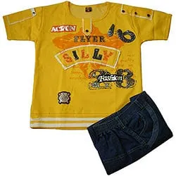 Kids apperals - smart and trendy set of Capri with T shirt in Yellow color. For Boys 7 to 9 yrs old