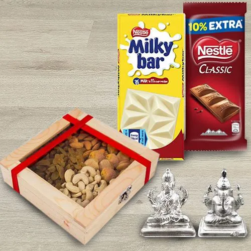 Deck the lives of the people closest to your heart with love by sending this Sublime Gift Box of Dry Fruits n Nestle Chocolates, Idol for Diwali that beautifully conveys the message of your heart to them. This Deepavali Gift set contains:
