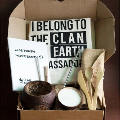 Celebrate festive season with Clan Earths Eco Friendly Essentials Gift Hamper, featuring a handcrafted Coconut Lantern, upcycled Coconut Shell Soy Wax Candle with Essential Oil, and a plantable Notebook, Pen, and Pencil. Complete with a Stainless Steel Straw, Cleaner, Bamboo Cutlery Set, and Jute Pouch, each item champions sustainability. Ideal for those who cherish eco-conscious living, this thoughtfully curated collection is beautifully packaged in a tote bag and bold recycled cardboard box. Give the gift of meaningful and planet-friendly choices this festive season, embodying the essence of Diwali through innovative, sustainable treasures.